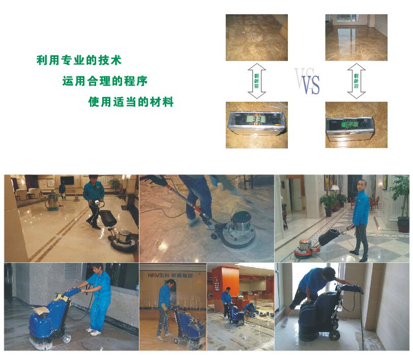 工程技術(shù)部【石材組】成立于2009年8月,是我公司技術(shù)含量較高的工程服務(wù)項(xiàng)目之一,配備了多套先進(jìn)的機(jī)械設(shè)備。經(jīng)過多年的不懈努力,全面掌握了不同石材的特殊處理辦法,具有專業(yè)的處理大型石材地面翻新、大面積晶面處理的能力。